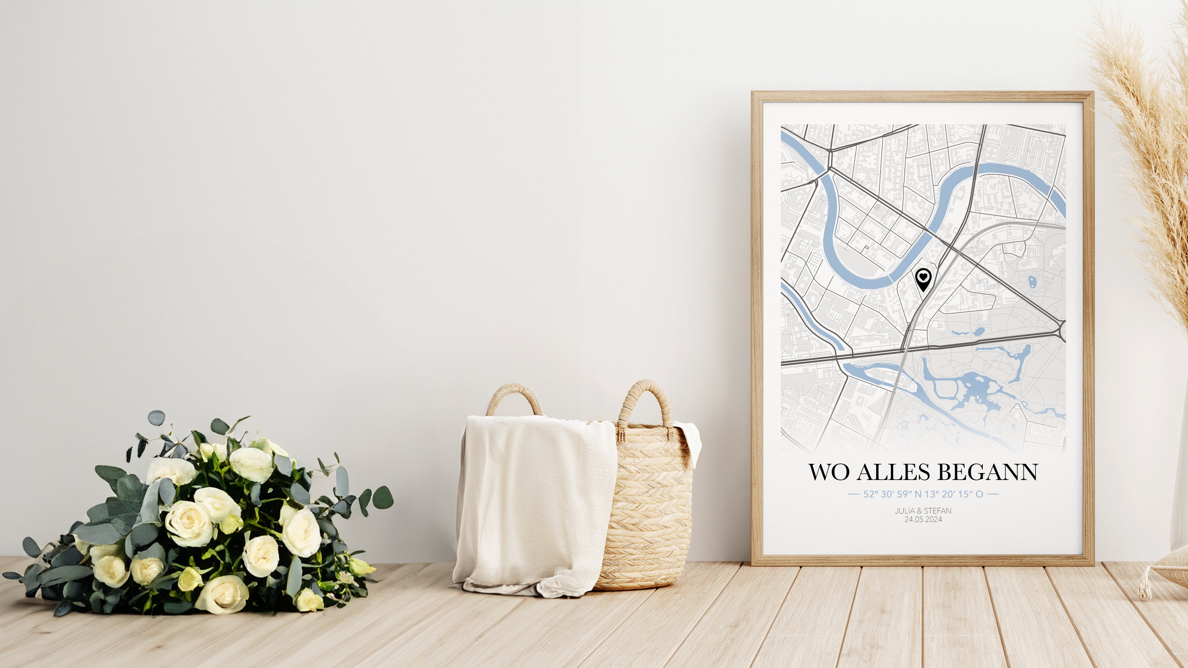 Unsere Holzrahmen bestehen aus lackiertem Echtholz und sind in schwarz, weiß und natur, in den Größen A5 bis A3 erhältlich. Unsere Aluminiumrahmen gibt es in den Formaten A5 bis A2. Hier hast du die Wahl zwischen gold, silber, schwarz und weiß. Das Rahmenglas besteht bei beiden Varianten aus leichtem, bruchsicherem Acrylglas.